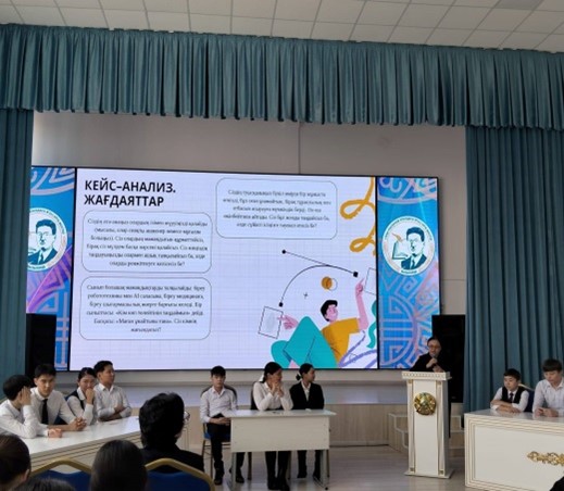 Шара барысында М.Мәметова атындағы Қызылорда педагогикалық жоғары колледжінен арнайы мамандар келіп, кәсіби бағыт-бағдар беру бойынша түсіндірме жұмысын жүргізді. Олар колледждің оқу мүмкіндіктері, мамандық түрлері және қазіргі еңбек нарығындағы сұраныс туралы жан-жақты ақпарат беріп, оқушылардың қызығушылық танытқан сұрақтарына жауап берді. Оқушылар түрлі мамандықтардың қоғамдағы рөлін талқылап, өз болашағына дұрыс бағыт таңдаудың маңызын тереңірек түсінді. Бұл тәрбие сағаты оқушылардың мақсат қою, өзін-өзі тану және саналы шешім қабылдау қабілеттерін дамытуға зор ықпал етті.